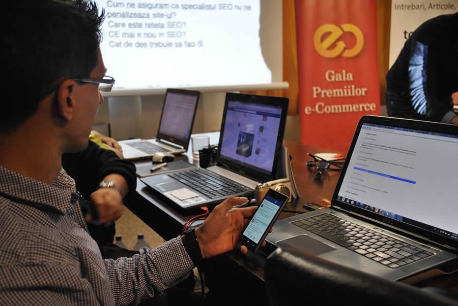 The last training day started with the most frequent usability mistakes that online shops make (practical examples debated with the participants by the trainer, which was Andrei Radu – CEO & Founder GPeC). The last training session was E-Commerce Social Media, debated by Cristi Manafu (Evensys) and focused on social media, the importance of communicating constantly, the most active 20 Romanian companies and the most popular and effective campaigns.