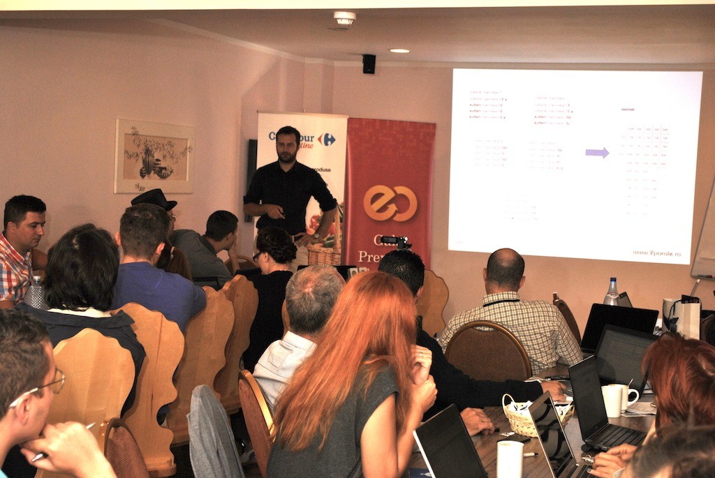 From tuesday till friday, more than half of each day was reserved for the training sessions. The first training session was Liviu Taloi’s presentation about the way an online shop should be organised, its department structure, the role of each department, the employees task attribution and their monitoring.